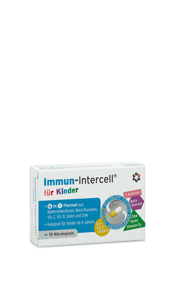 - Immun-Intercell® dla dzieci to unikalna kombinacja mikroskładników odżywczych, które w skuteczny sposób wspierają działanie młodego, nadal kształtującego się układu odpornościowego.