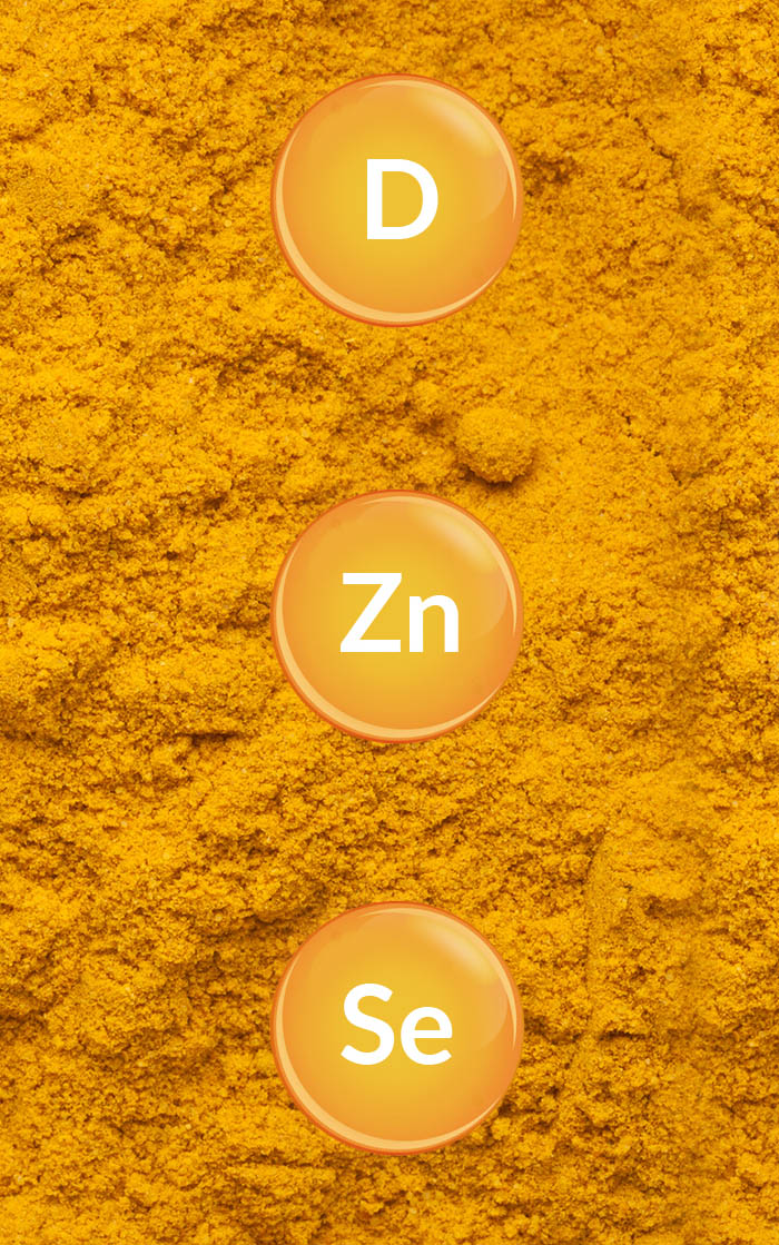 - Pozostałe składniki preparatu takie jak cynk, enzymy roślinne, resweratol czy witamina D wzmacniają pozytywny wpływ kurkumy na nasz organizm.