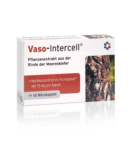 Pycnogenol® to opatentowany ekstrakt z kory sosny nadmorskiej, pozyskiwany z drzew uprawianych wyłącznie w południowo-zachodniej Francji. Vaso-Intercell® zawiera szczególnie wysokie i zgodne z wynikami badań laboratoryjnych stężenie Pycnogenolu® - 75 mg w jednej mikrokapsułce.