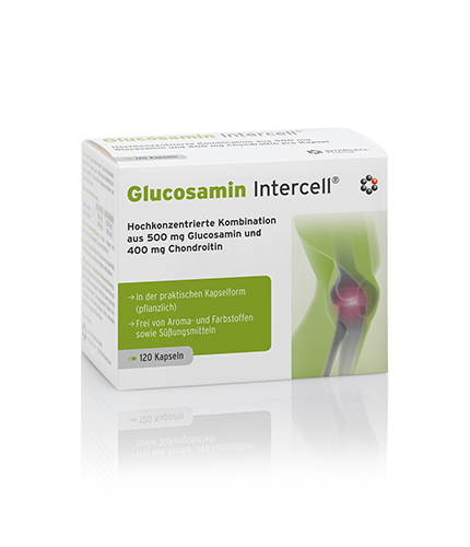 - Preparat Glucosamin Intercell® pomaga pomaga utrzymać prawidłowy poziom glukozaminy oraz chondroityny w komórkach.
