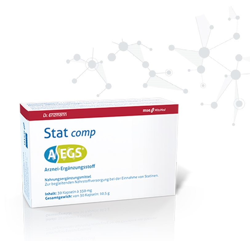 - AEGS® Stat Comp to unikalne połączenie 4 substancji odżywczych w wysokich porcjach: koenzymu Q10 (ubichinolu), niacyny, selenu oraz witaminy D.