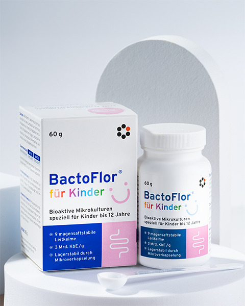 BactoFlor® dla dzieci opracowano w ten sposób, aby możliwa była jego specjalna adaptacja do mikrobioty dzieci do 12 roku życia. Można go dodać do butelki z mlekiem, kaszki czy Müsli.