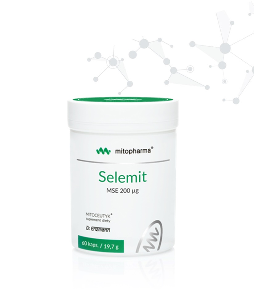 Selemit MSE zawiera wysoce przyswajalną formę selenu – selenin sodu. Umożliwia utrzymywanie prawidłowego poziomu selenu w komórkach.
