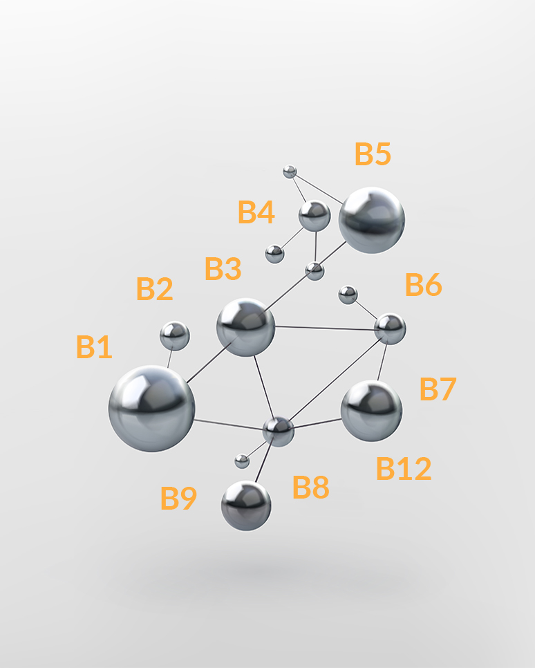 Dla prawidłowego funkcjonowania organizmu konieczne są odpowiednie poziomy wszystkich witamin z grupy B, które są od siebie metabolicznie zależne. Oznacza to, że podczas syntetyzowania jednych witamin, potrzebna jest obecność innych. Preparat B-Komplex MSE dostarcza organizmowi 8 witamin z grupy B, cholinę oraz inozytol w wyjątkowo wysokich porcjach.