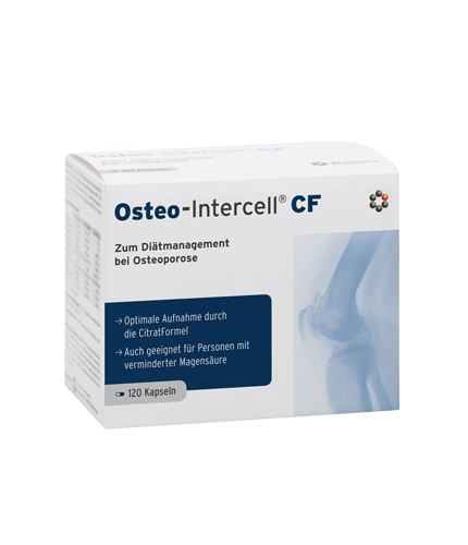 - Osteo-Intercell® CF to preparat, który dostarcza organizmowi wszystkich najważniejszych substancji aktywnych, decydujących o prawidłowej pracy układu szkieletowego i zrównoważonej gospodarce wapniowej. Dzięki synergicznemu połączeniu wapnia, magnezu, witaminy K, witaminy D, kwasu foliowego i witaminy B12 uzyskano wyjątkową skuteczność preparatu na poziomie komórkowym.